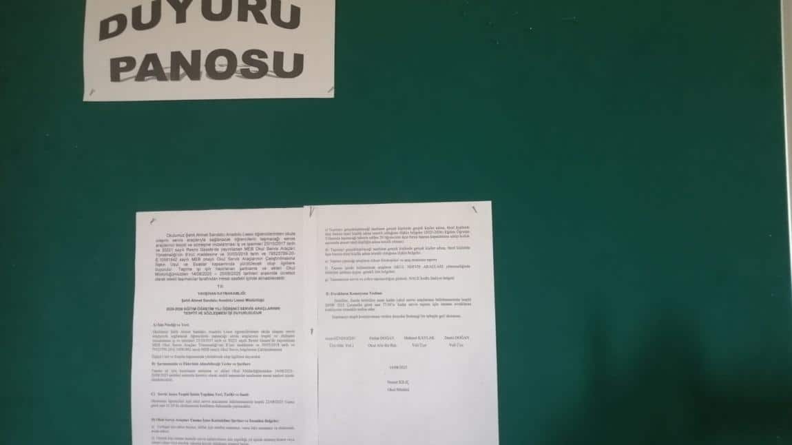Okulumuz Şehit Ahmet Sandalcı Anadolu Lisesi öğrencilerinden okula ulaşımı servis araçlarıyla sağlanacak öğrencilerin taşınacağı servis araçlarının tespiti ve sözleşme imzalanması iş ve işlemleri 25/10/2017 tarih ve 30221 sayılı Resmi Gazete’de yayımlanan MEB Okul Servis Araçları Yönetmeliği’nin 8’inci maddesine ve 30/05/2018 tarih ve 79523799-20-E.10581842 sayılı MEB onaylı Okul Servis Araçlarının Çalıştırılmasına İlişkin Usul ve Esaslar kapsamında yürütülecek olup ilgililere duyurulur. Taşıma işi için hazırlanan şartname ve ekleri Okul Müdürlüğümüzden 14/08/2025 – 20/08/2025 tarihleri arasında ücretsiz olarak istekli taşımacılar tarafından mesai saatleri içinde alınabilecektir.